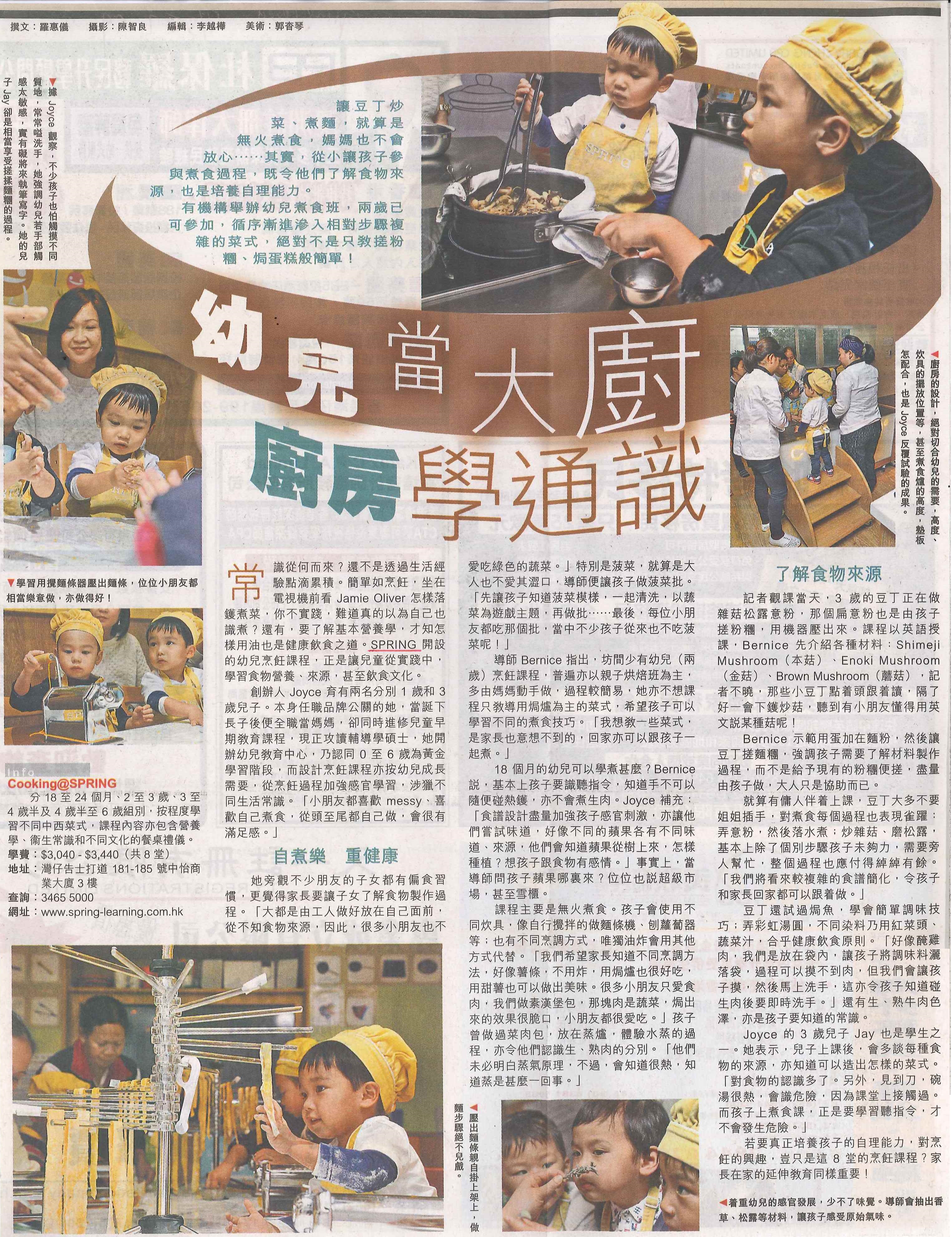 Posted on 17 March, 2014DOWNLOAD PDFHKET reports on SPRING’s cooking programme and how this programme teaches children much more than culinary skills (Chinese)