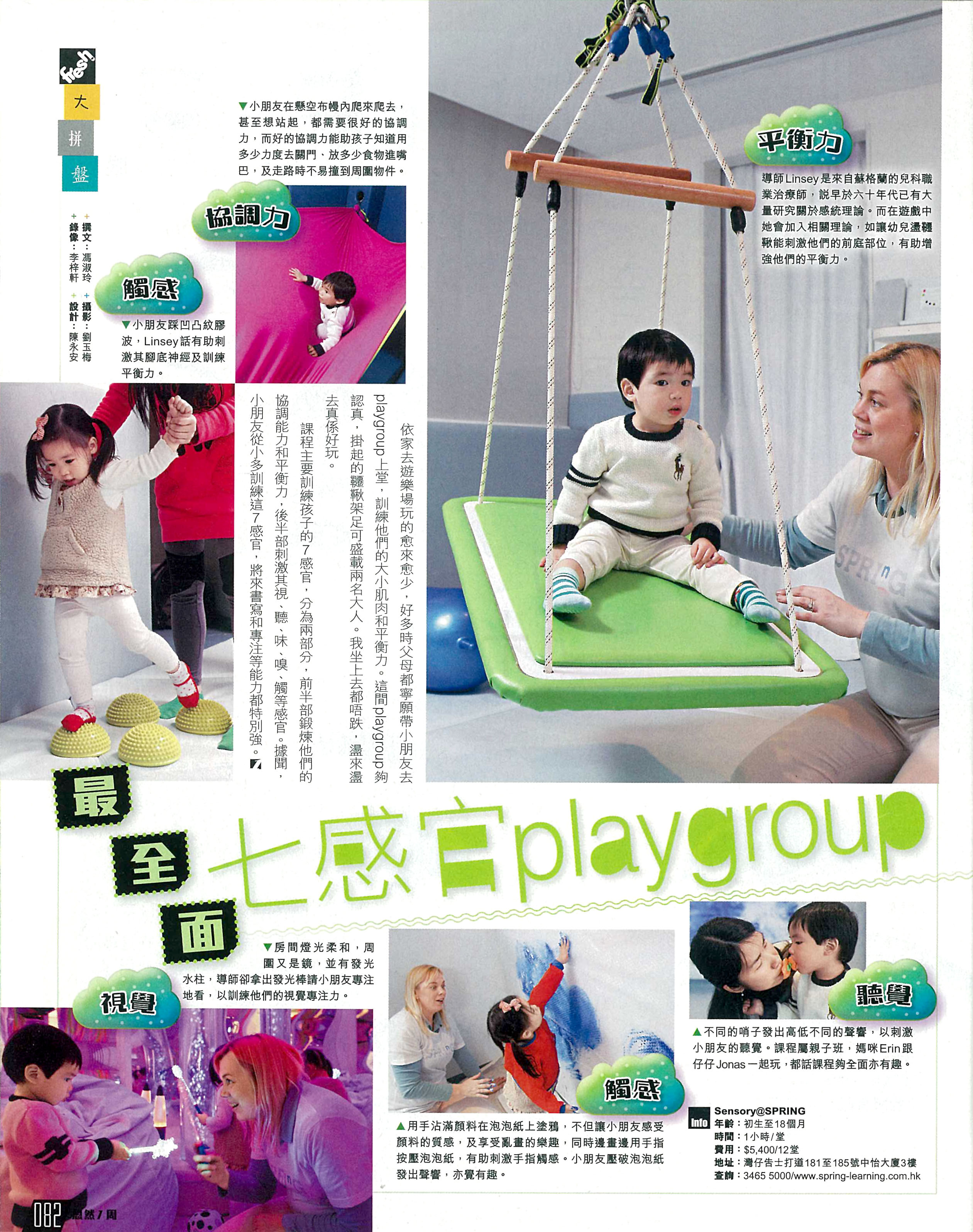 Posted on 17 February, 2014DOWNLOAD PDFSmart Parents reports on SPRING’S sensory programme and how sensory stimulation will help the growth and development of young children (Chinese)